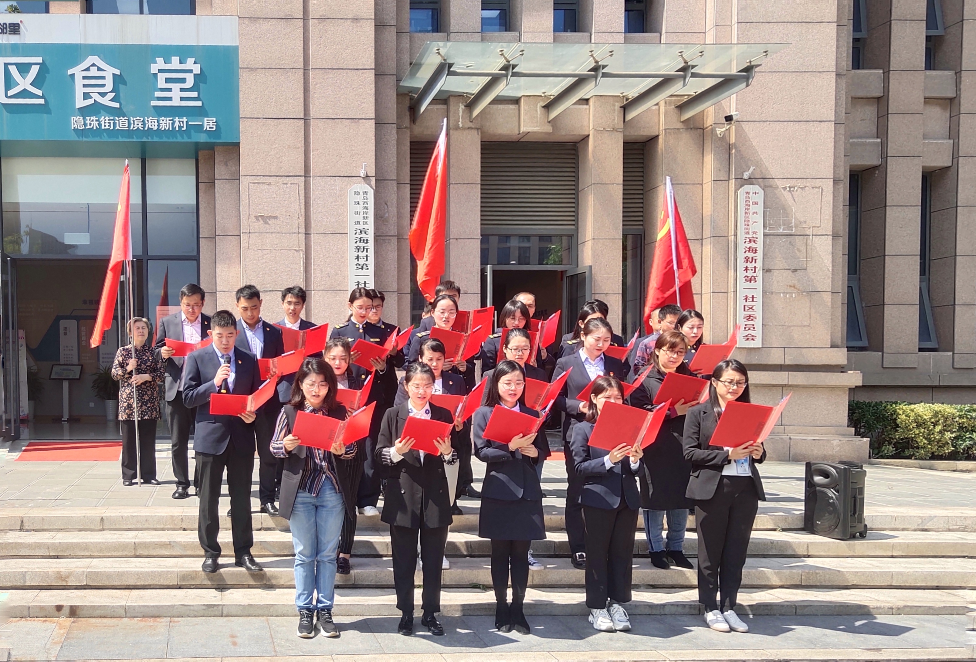 首先,共建雙方成員在濱海一居社區活動中心樓前集體誦讀了舒婷的《祖國啊,我親愛的祖國》,共同感受詩人對祖國的那份無比熱愛、無限期盼和獻身的決心。